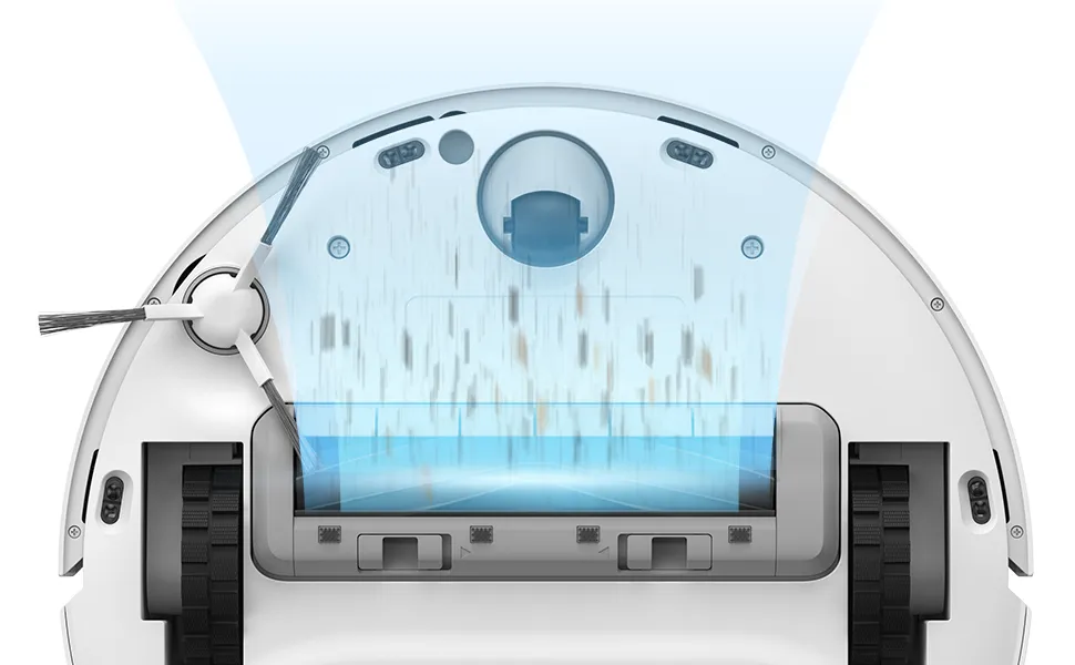 - Depósito de polvo grande y fácil de vaciar: El D10 Plus Gen 2 cuenta con un depósito de polvo grande, lo que reduce la necesidad de vaciarlo frecuentemente, permitiendo que el robot continúe limpiando sin interrupciones.
