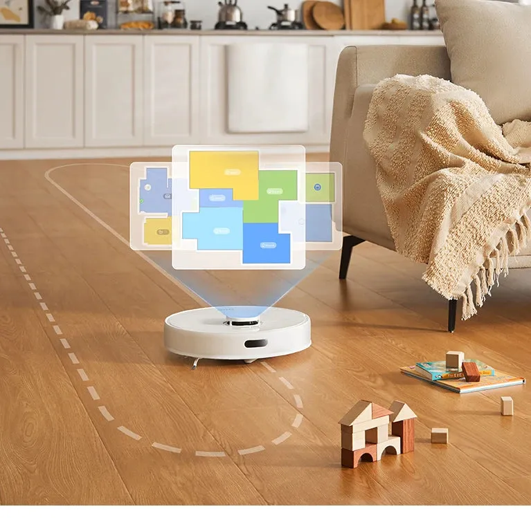 - Navegación inteligente con mapeo láser (LIDAR): Gracias a su tecnología de mapeo láser LIDAR, el D10 Plus Gen 2 puede mapear de forma precisa el entorno de tu hogar, lo que permite una navegación más eficiente y evita obstáculos. El sistema asegura que el robot cubra toda el área de limpieza de manera lógica y sin repeticiones.